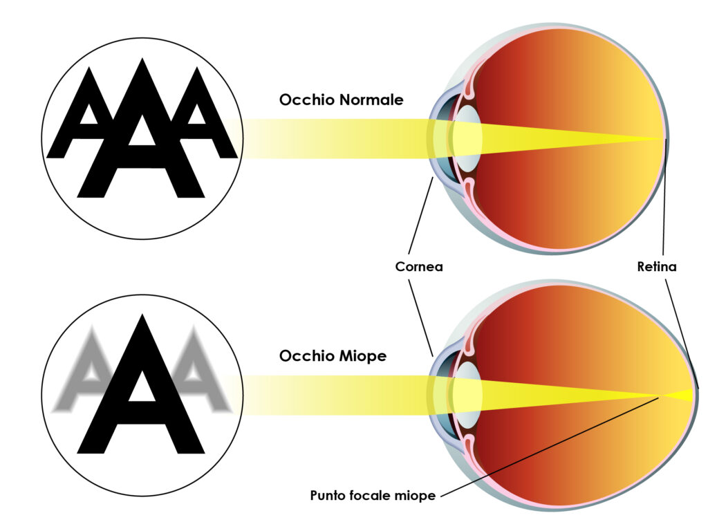 Nella miopia, invece, l’immagine si forma davanti alla retina. Questo accade perché: